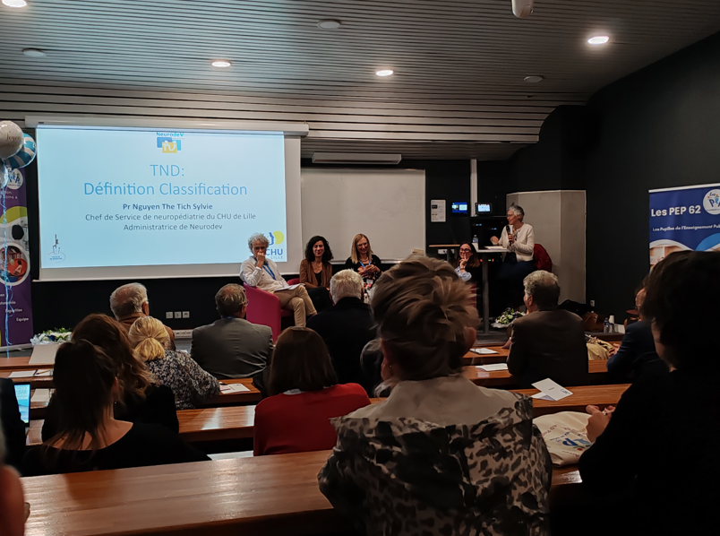 En présence du Pr Sylvie NGUYEN, Cheffe de service de la neurologie pédiatrique au CHU de Lille et administratrice NeurodeV Hauts-de-France, du Dr Béatrice DEKERLE, Médecin Directeur de CAMSP et secrétaire NeurodeV Hauts-de-France, du Dr Laure Desnoulez et du Dr Géraldine Kechid.